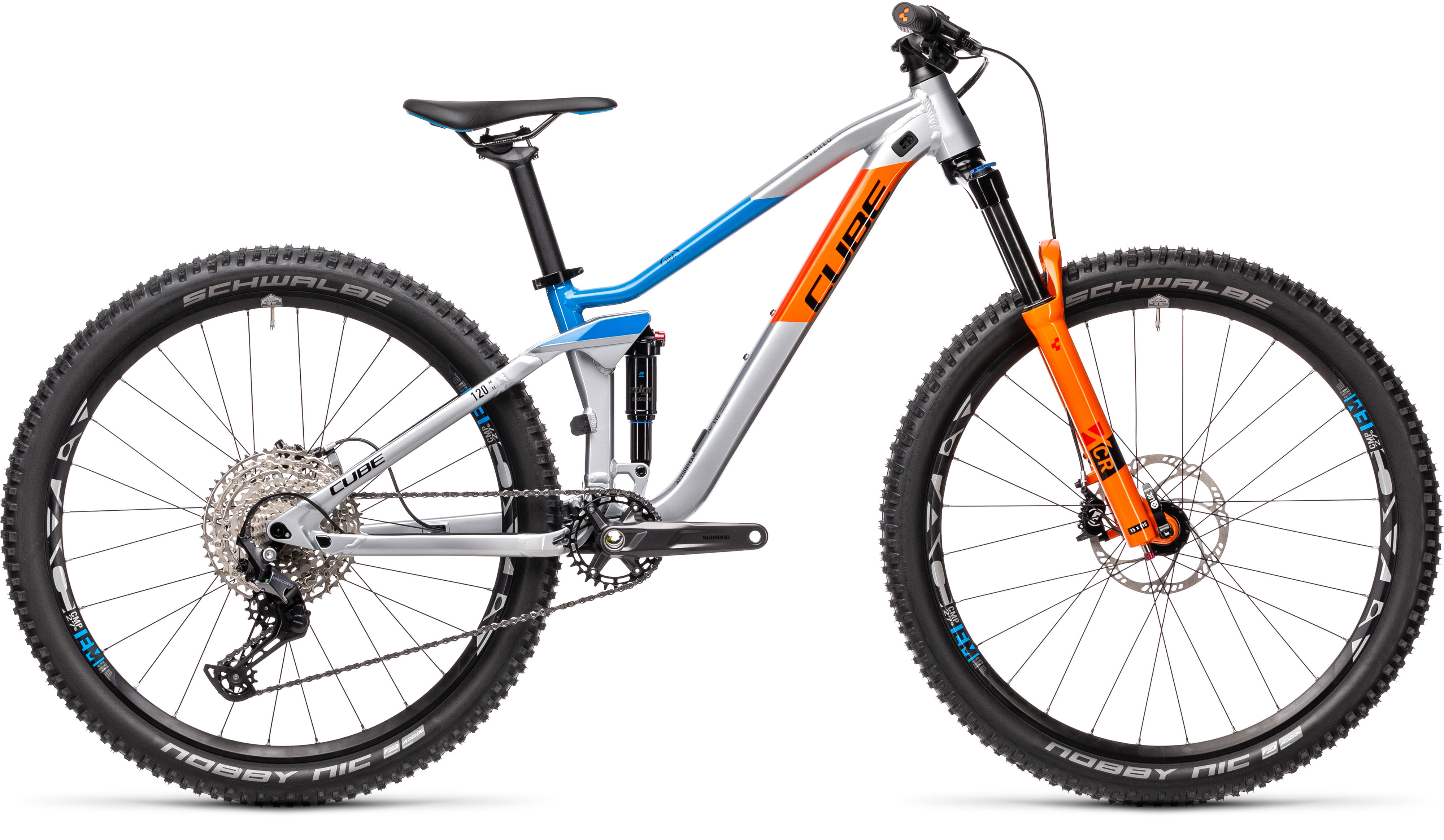 Klein aber Oho! Das Stereo 120 Rookie ist genauso wie das große Stereo ein voll ausgestattetes Fully MTB, aber für die jungen Wilden, die mehr vom Sport wollen und auch ein Fahrrad brauchen, dass sie weiter bringt. Mit Luftfedergabel und Dämpfer von Suntour werden dank der Möglichkeit diese auf geringes Gewicht einzustellen, perfekte Anpassungsfähigkeiten des Fahrrads an seinen Fahrer möglich. Auch wie bei den Großen gibt es eine 12-fach Schaltung von Shimano die präzise schaltet und wie alle Teile von Shimano, wartungsarm und langlebig ist. Auch an hydrailische Bremsen muss man sich als Sprößling gewöhnen, das können die Magura MT gut leisten. Schon die kleinste Berührung am Hebel und das Bike verlangsamt sich. Perfekt um Wheelies zu lernen und Trails präzise hinabzubrausen. Cube liefert hier ein perfektes Kinder Fully -MTB das auf die großen Fully MTBs vorbereitet. Kinder stehen perfekt im Fahrrad und lernen so Federgabel und Dämpfer im Gelände zu führen. Kommt bei uns im bike-store in Haßfurt vorbei und überzeugt euch selbst!